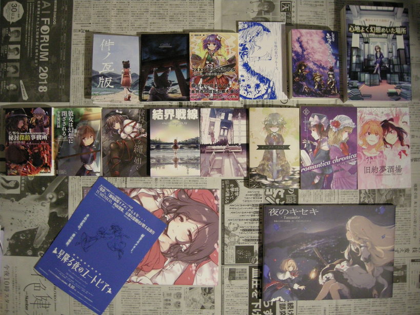小説とスケベブック。中段全部秘封。そこかしこで「うつつのゆめ」続編的なチラシを貰った(青いやつ)。気になる。