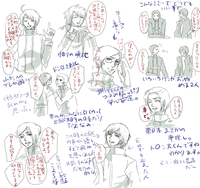 東海道→山形は5話のやつで呼びかけでないやつも拾ってしまったので、純粋な呼びかけはもうちょい少ないかもしれませんが、東北上官だけが恥ずかしい男なのもアレなのでこれでいいや。カウントが恣意的ですいません。