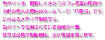 ●なお、まだ掲載が完了していないワンフェス2011夏と夏コミC80の写真は、冬コミC81の写真ともども順次公開していく予定ですが、いつかの段階で、過去の写真の削除と等価交換になりますことを、あらかじめお知らせしておきます… |